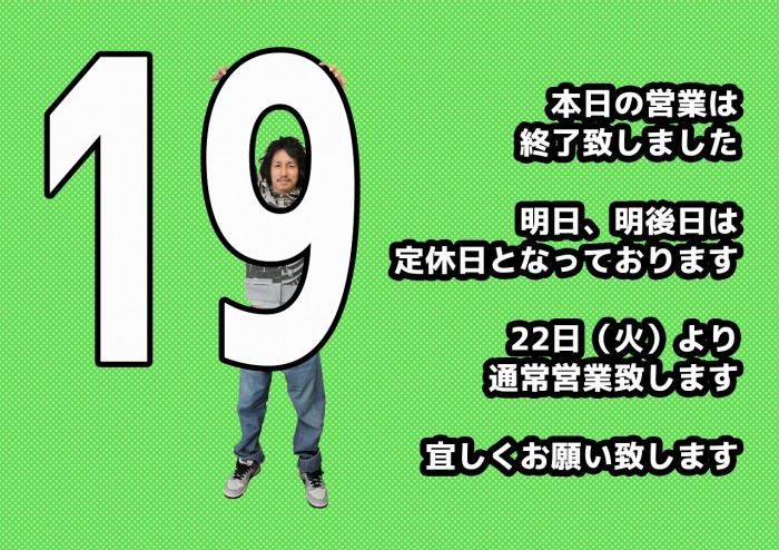 本日の営業は終了致しました。