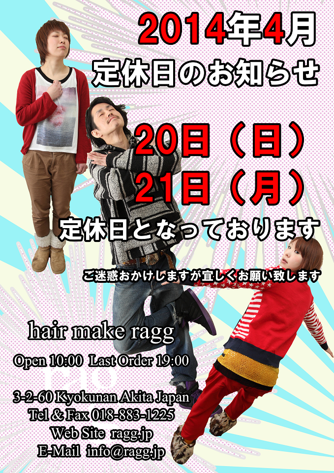 今日と定休日となっております。