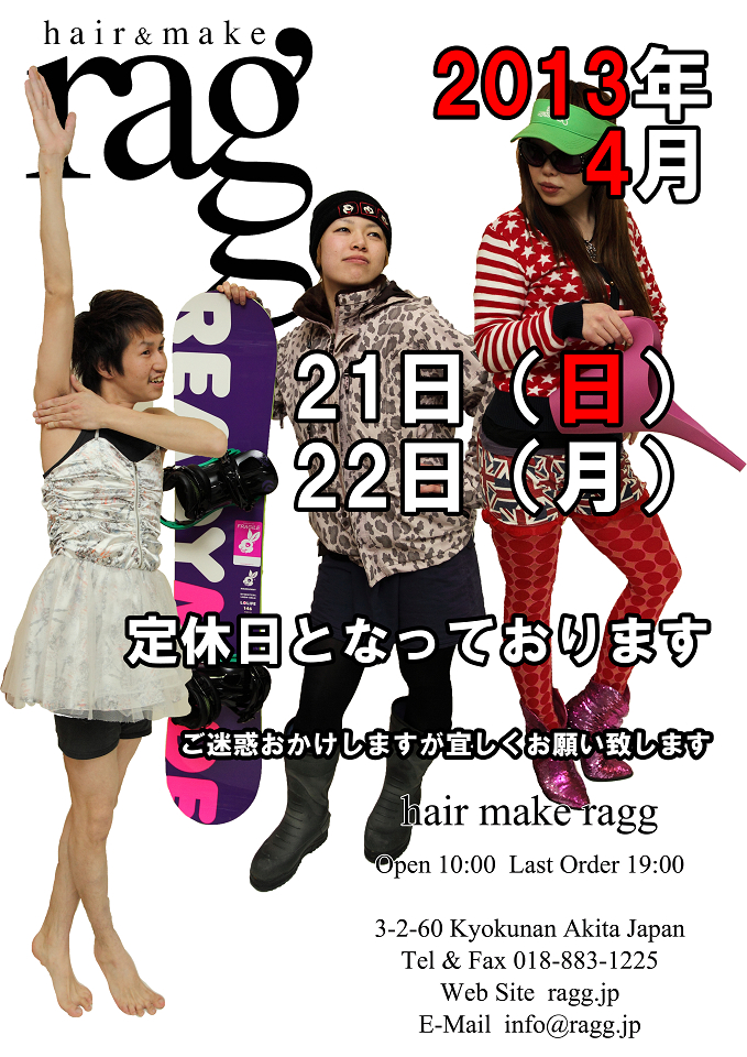 定休日とさせて頂きます。