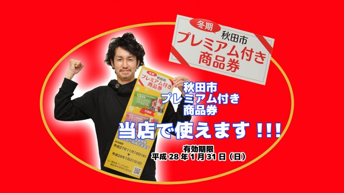 ◆『秋田市プレミアム付き商品券』当店でもお使い頂けます。是非ご利用くださいませ。◆
