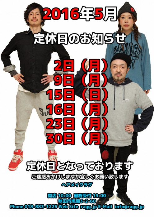 raggは5日(月)以外は