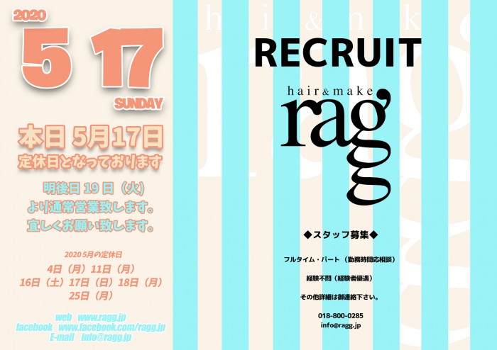 19日(火)より通常営業致します